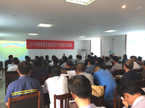 916日,陈集镇召开了水稻绿色高产创建现场观摩培训会,水稻种植大户、科技示范户等共计70余人参加了此次会议。