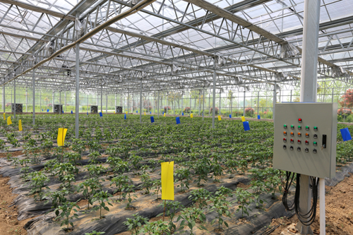 二是集成丘陵地区蔬菜省工节本节水体系。以钢架大棚为载体,通过两侧安装防虫网隔离,顶部使用遮阳网覆盖降温,内部使用低压喷滴灌保湿,促进无公害蔬菜的优质高效生产。并综合应用低压管道、喷滴灌系统、施肥过滤系统等水肥一体化技术体系,利用滴灌系统中水为载体,将配制好的肥液适时、适量、准确地随水施肥,输送到植株根部土壤中供其吸收。使灌水量、灌水时间、施肥量、施肥时间都有了较高的精度,达到水肥同步、集中供给、一次投资、多年受益目的。