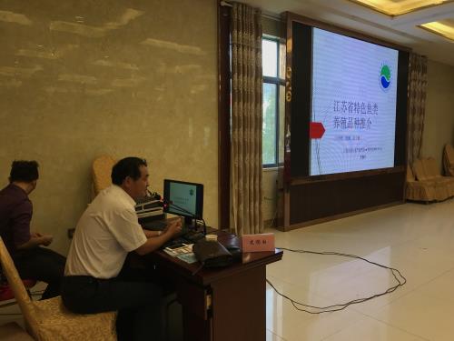培训会议上史教授向参会人员推介了沙塘鳢、斑鳜、杂交鳜等特色经济水类,就它们生长习性、养殖要点、经济效益、苗种来源、销售途径等方面进行培训。
