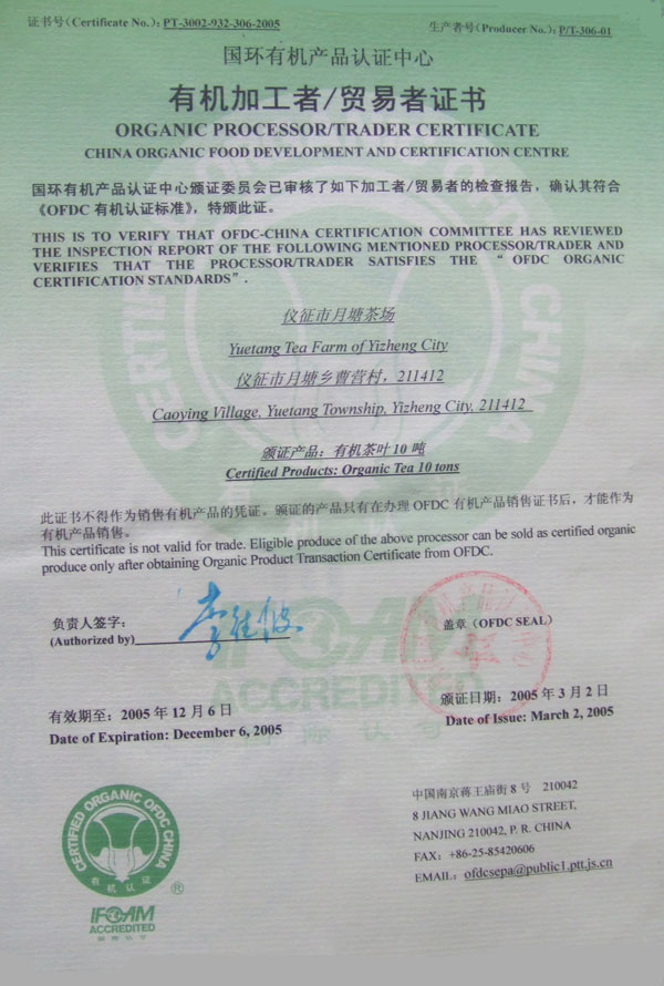 月塘茶场茶园已全面追施有机肥料,以人工补助的独特方法替代农药,制茶采用电和柴作燃料,生产的“登月”牌茶叶曾先后荣获江苏省“陆羽杯”名优茶评比一等奖,全国“中茶杯”名优茶评比特等奖。首批获得扬州市知名商标,2002年3月荣获中国绿色食品发展中心颁发的绿色食品证书,2004年元月荣获国环南京有机食品认证中心颁发的有机茶证书。